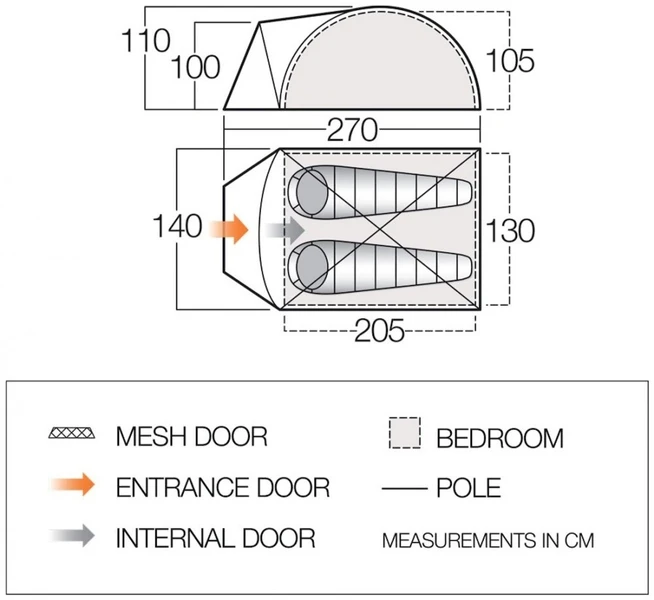 Met een waterkolom van 3000 mm is de Vango Tay 200 tent erg waterdicht. Daarmee is de tent goed bestand tegen regen en wind zodat je ook bij slecht weer lekker warm en droog kunt slapen. De gedeeltelijke gazen binnendeur ventileert goed én houdt insecten buiten. Geen last van zoemende muggen dus! De binnentent is los van de buitentent op te zetten, wat ideaal is als je de nacht spendeert op een tropische bestemming. Zo slaap je namelijk een stuk koeler en wordt de tent nog beter geventileerd. Handig!